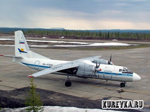 Описание: АН-24 прогревает двигатели перед взлетом