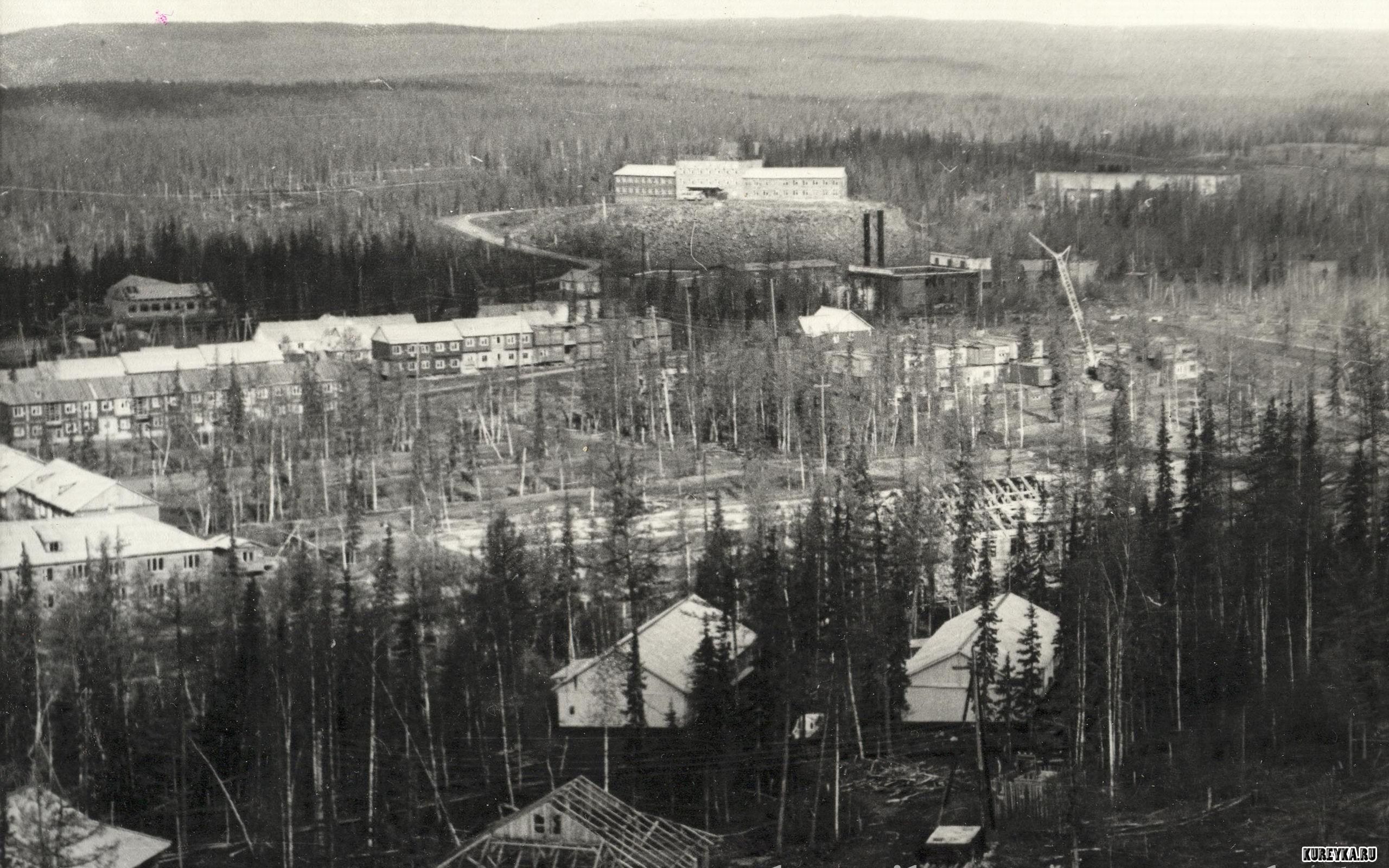 Описание: Строительство временного поселка в самом разгаре. На заднем плане здание управления строительства Курейской ГЭС. В народе его называли "Пентагон".