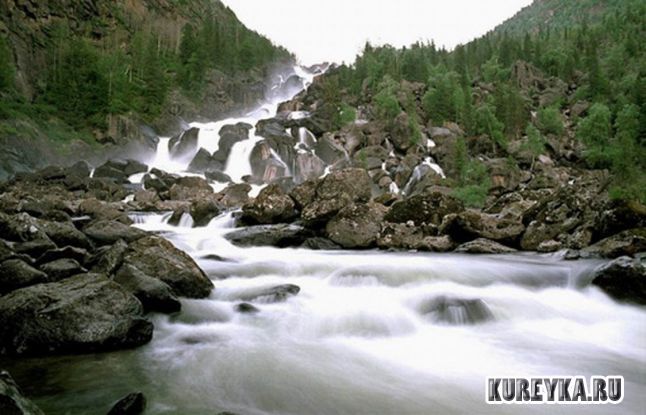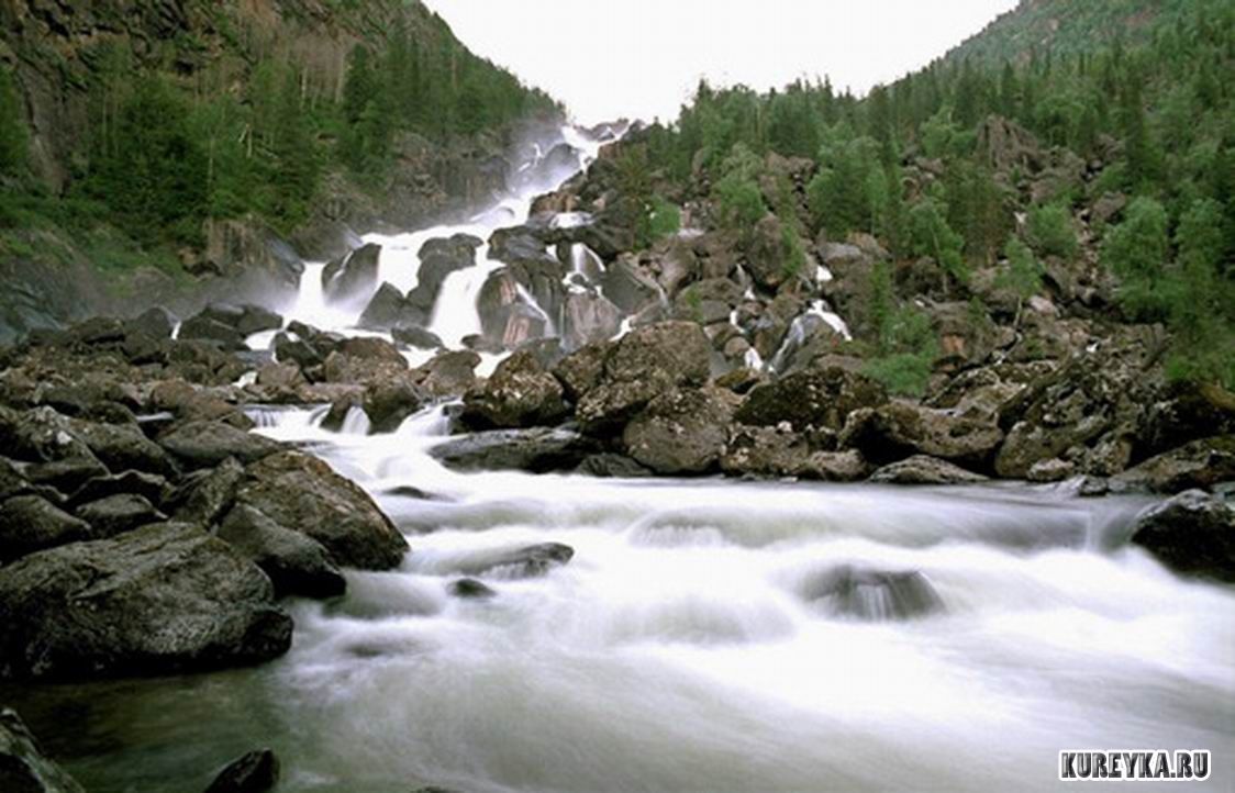 Описание: Самый высокий водопад в Азии - Тальниковый. Водопад находится на безымянном ручье. Источником питания ему служит небольшое озеро. После падения водопад небольшим ручьем впадает с левого берега в устье реки Тальниковой, левой притоки Курейки.