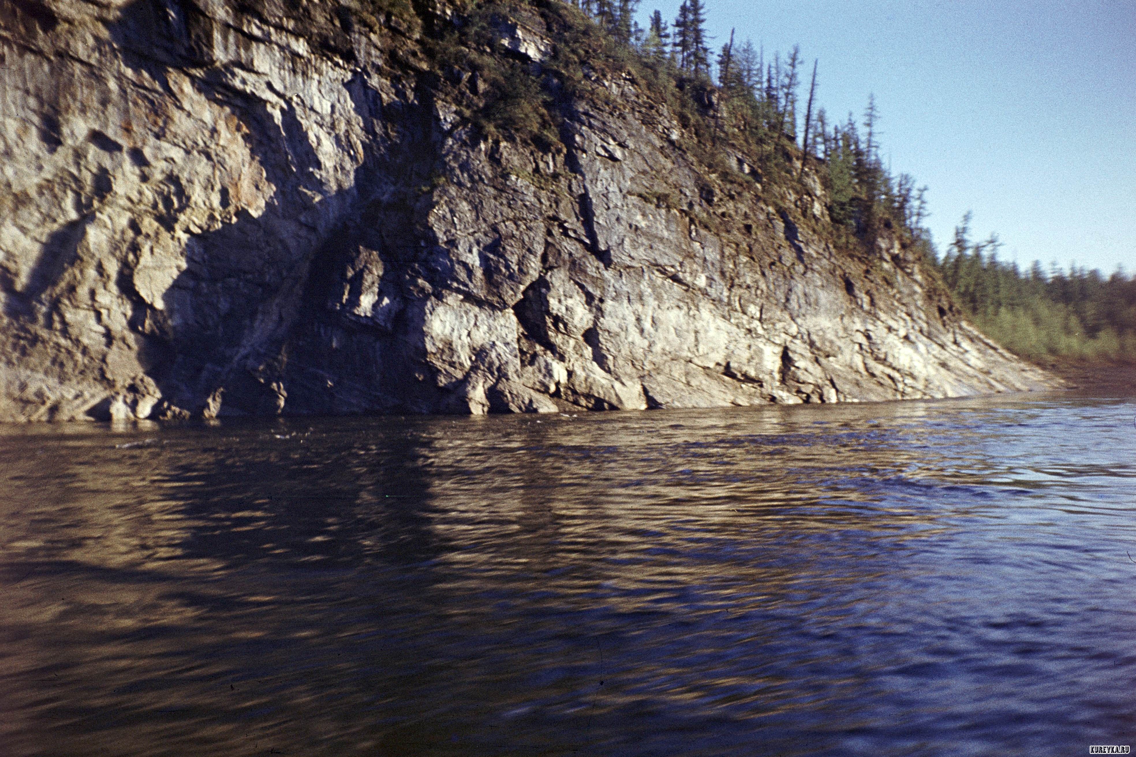 Описание: Устье Курейки. Уже скоро на этой скале появится надпись "Вас приветствует Светлогорск". Фото из личного архива Евгения Жданова.