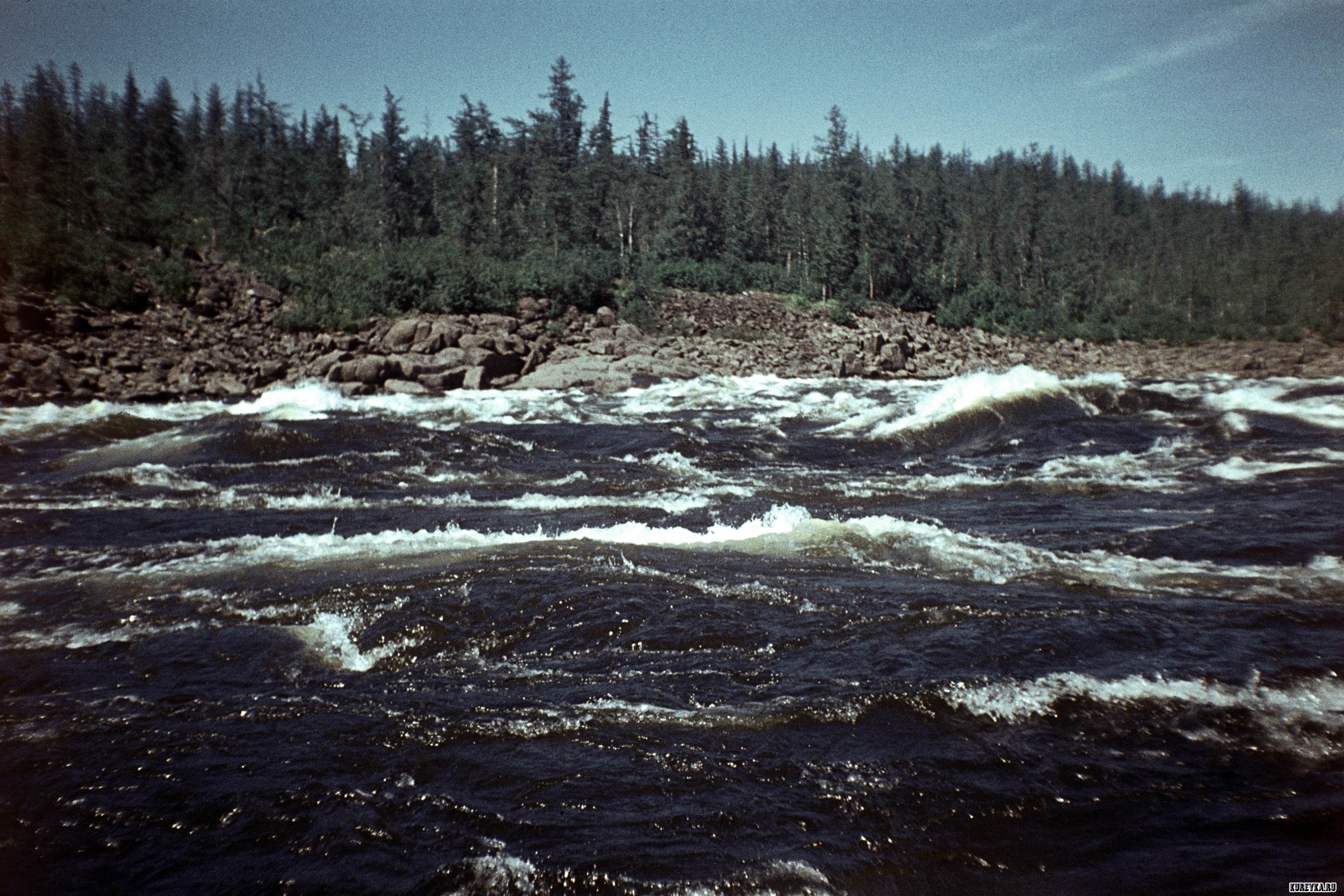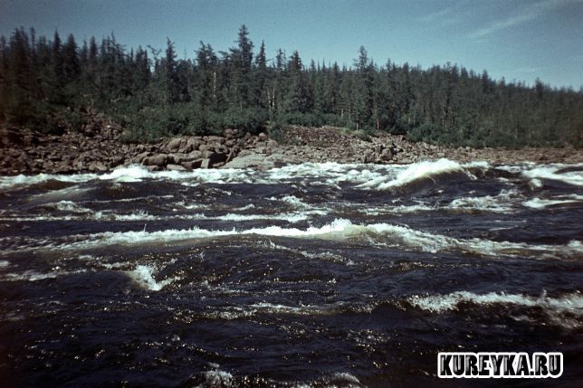 Описание: Река Курейка сразу после первого порога. Одно из самых бурных мест на реке. Фото из личного архива Евгения Жданова.